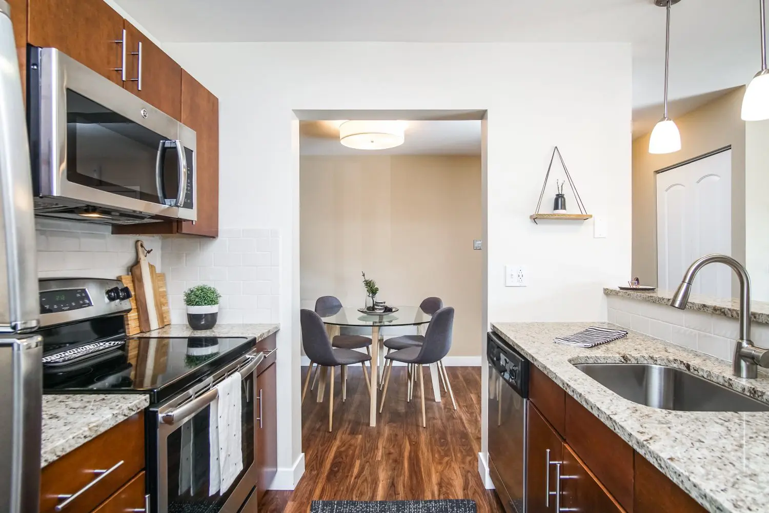 Our spacious 1, 2 and 3 bedroom homes feature gourmet inspired pass-through kitchens with high-end details. As a resident, you’ll enjoy features such as breakfast bars, walk-in closets, patios or balconies with tranquil nature views and much more. Many homes within our community feature fireplaces and granite countertops.